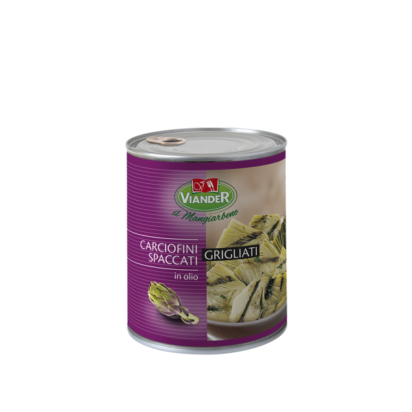 Grilled, halved artichokes in sunflower oil.