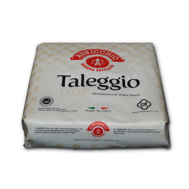 Soft cheese with ancient origins named after Val Taleggio in Bergamo, where it was first made and is still produced, hand-salted and aged in pine boxes.