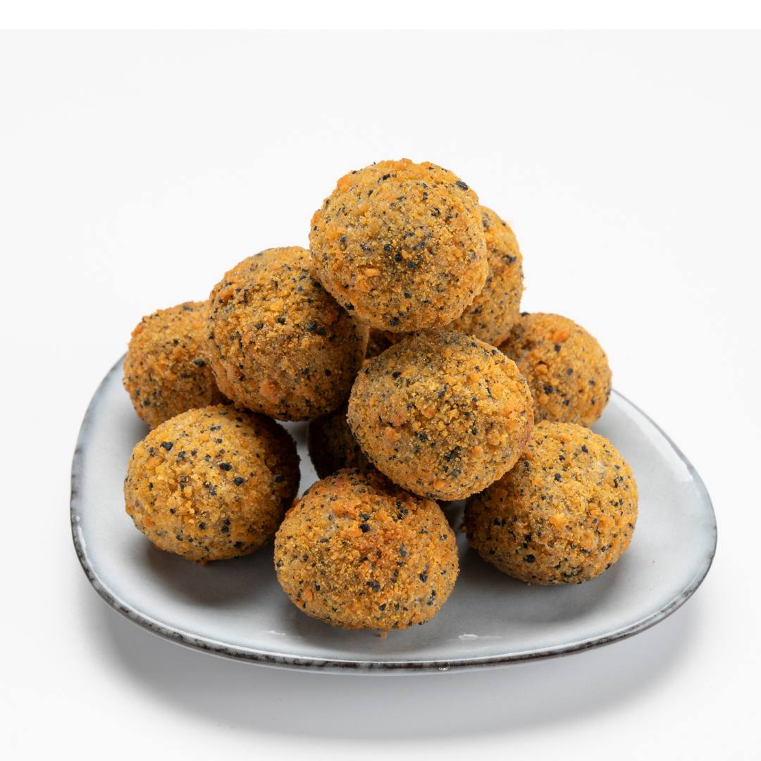 Mozzarella 50 % (mjölk, salt, sommartryffel (Tuber aestivum vitt) 0,2 %, arom, mikrobiell löpe, syrakultur), ströbröd (vetemjöl, salt, kakaopulver, jäst, paprikapulver, gurkmejapulver, solrosolja), vetemjöl, vatten, solrosolja.