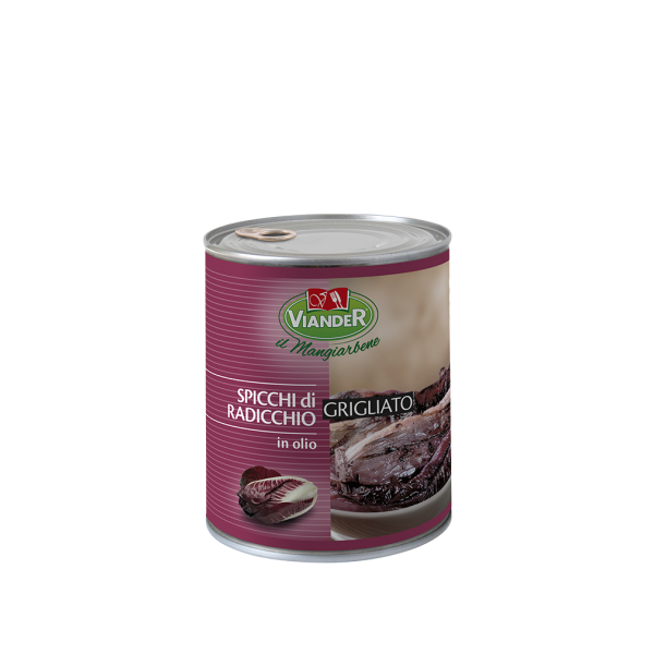 Grilled Treviso radicchio wedges in sunflower oil. The product is pasteurised and has a long shelf life. Radicchio brings authentic Italian flavour and versatility to cooking and serving. It is an excellent side dish for grilled meats or other main courses, works well as a pizza topping, and is ideal for gourmet dishes and antipasto platters.