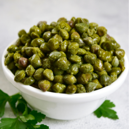 Luokan 9/10 mm kapriksia viinietikassa.