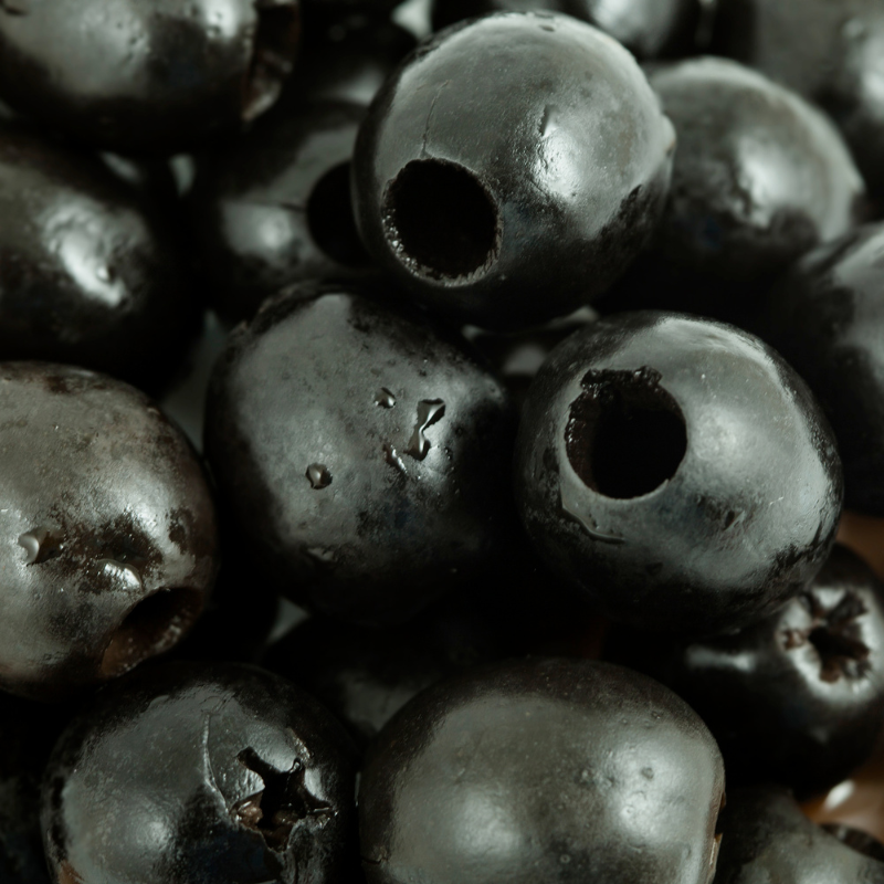 Pitted black olives in brine.