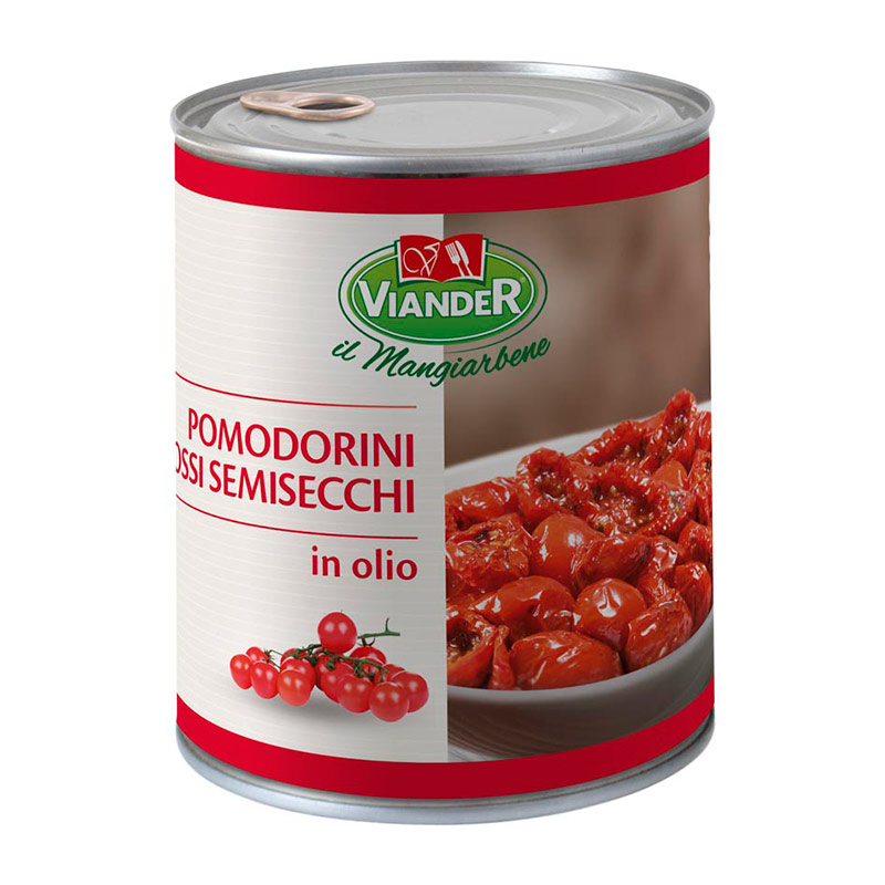 Punainen kirsikkatomaatti (57%), auringonkukkaöljy, vesi, sokeri, suola, lehtipersilja, peperoncino-chili, valkosipulijauhe, oreganon lehtiä, happamuudensäätöaine: maitohappo (E270). Valmistettu tehtaassa, jossa käsitellään selleriä ja viljoja.