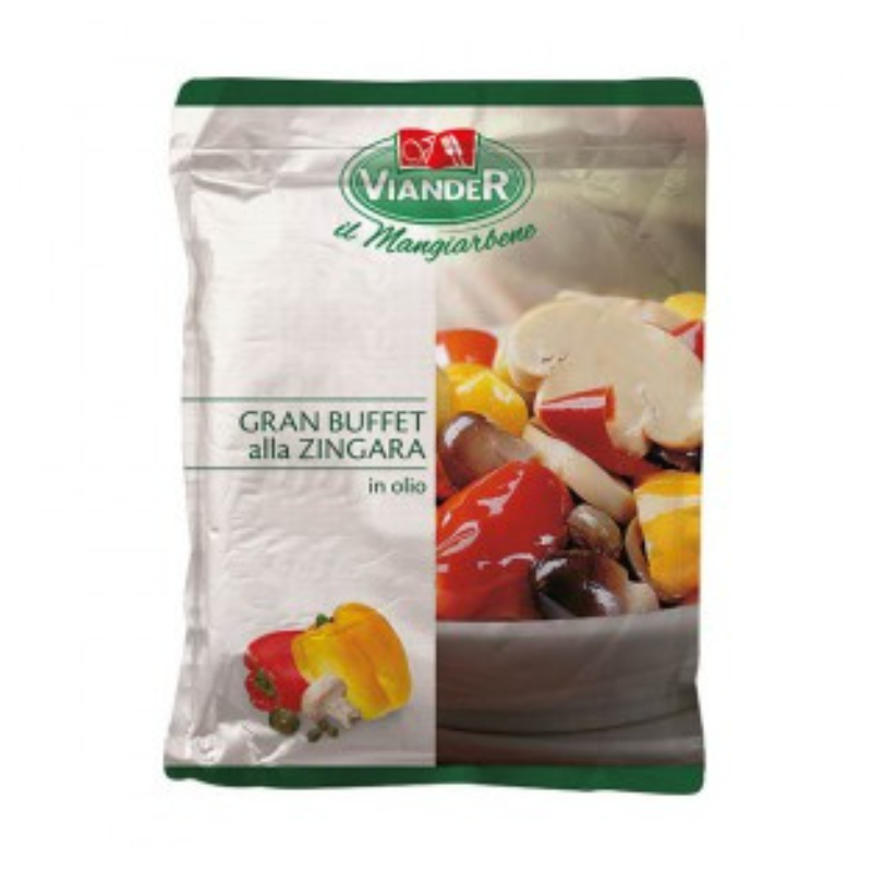 Sekoitus vihanneksia vaihtelevassa suhteessa 84% [punaiset ja keltaiset paprikat, herkkusieni (Agaricus bisporus), viljelytuppisieni (Volvariella Volvacea), vihreät oliivit, mustat oliivit, kaprikset], auringonkukkaöljy, viinietikka, suola, happamuudensäätöaine: sitruunahappo (E330), hapettumisenestoaine: askorbiinihappo (E300). Sisältää sulfiitteja.