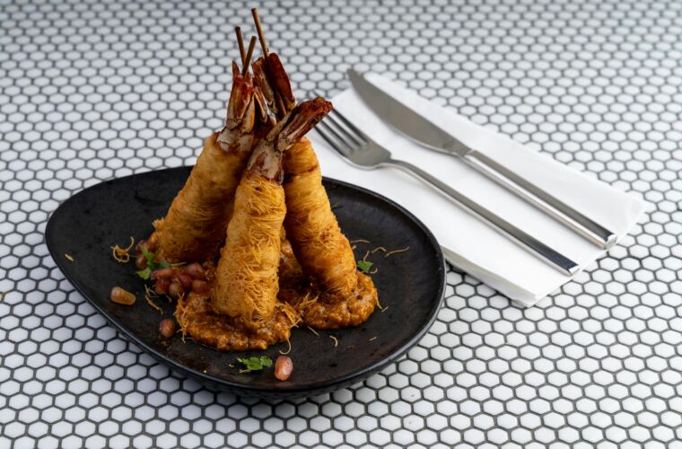 Kataifi on erinomainen valinta silloin, kun annokselle halutaan luoda useita rakenteellisia kontrasteja. Lisäksi rihmarakenne luo luonnollisia taskuja, jotka säilyttävät täytteet ja makuaineet tehokkaasti tuotteen sisällä.